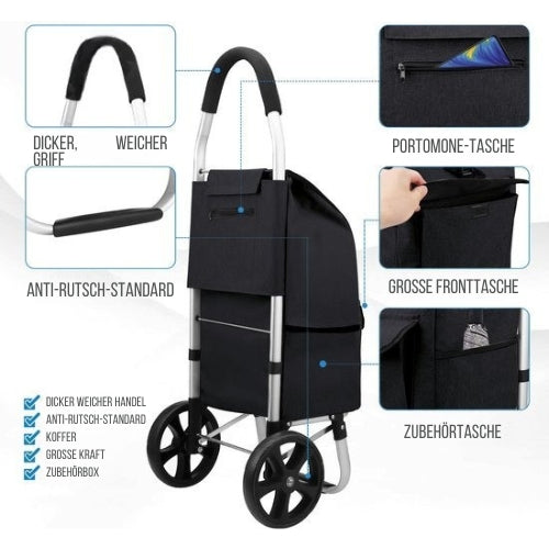 Strex - Einkaufstrolley - Zusammenklappbar - Abnehmbare Einkaufstasche - wasserdicht - Schwarz