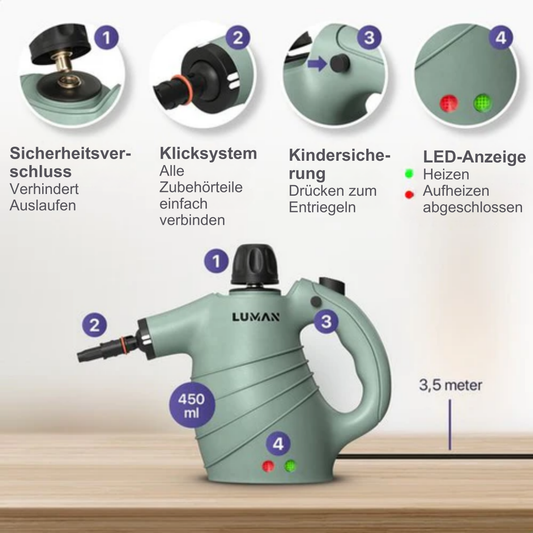 LUMAN 16-in-1 Dampfreiniger C1 - Handdampfreiniger - Fleckenreiniger - 1050 Watt - 450 ML - Grün
