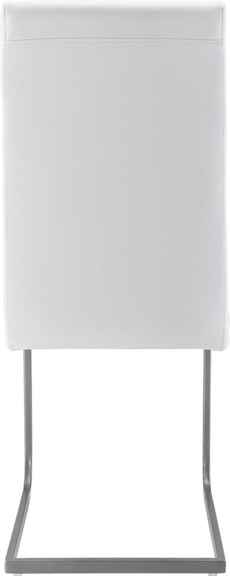 Schaukeln Sie gerne ein wenig? Wippen Sie das 2er-Set Vegas Freischwinger (weiß) mit Körperdruck sanft hin und her und verhindern Sie eine unbequeme Sitzposition. Genießen Sie gemütliche Momente mit Freunden oder der Familie! Dieser robuste Esszimmerstuhl ist aus Metall gefertigt und mit weichem Kunstleder bezogen. Der stilvolle Freischwinger setzt einen optischen Akzent im Esszimmer, in der Küche, im Wohnzimmer oder im Arbeitszimmer. Dank der schlichten Lederoptik versprühen die modern gestalteten Esszimmerstühle schicken Charme und sind besonders pflegeleicht. Zudem ist das Set kostengünstig und schnell aufgebaut.