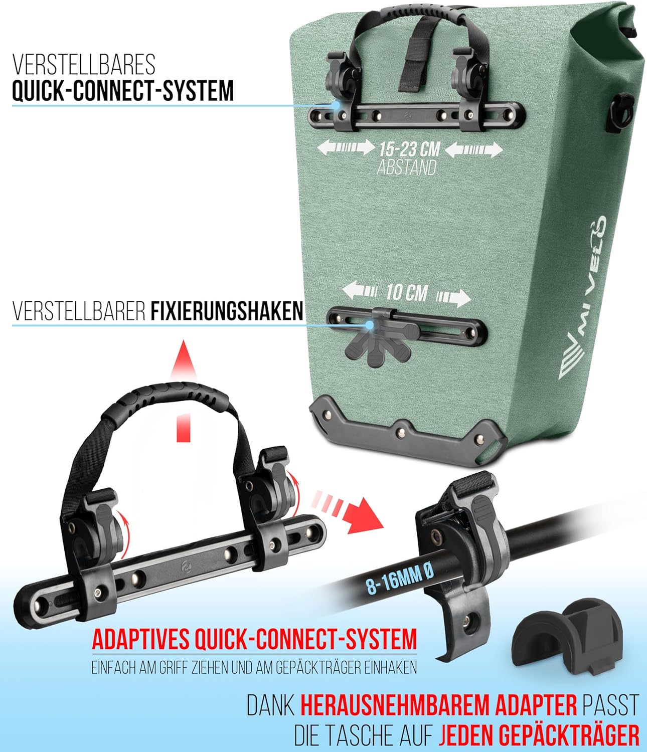 - Einfache und sichere Befestigung: Dank des innovativen Quick-Connect-Systems lässt sich die Tasche blitzschnell am Gepäckträger befestigen und abnehmen und ist auch für E-Bikes geeignet
