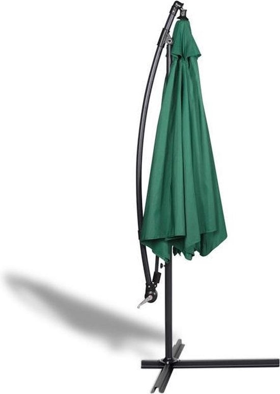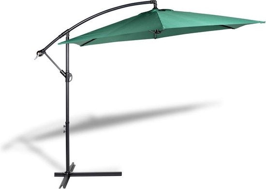 909 OUTDOOR Hängesonnenschirm in dunkelgrün 2,5 m hoch, Gartenschirm mit Stahlgestell und Abdeckung, Sonnenschirm mit Kurbel und Kippfunktion, Durchmesser 300 cm