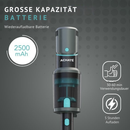 Achaté© - Stabstaubsauger - Kabellos - 4 Aufsätze - LED-Anzeige - Staubbuster