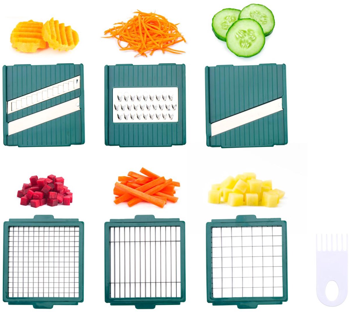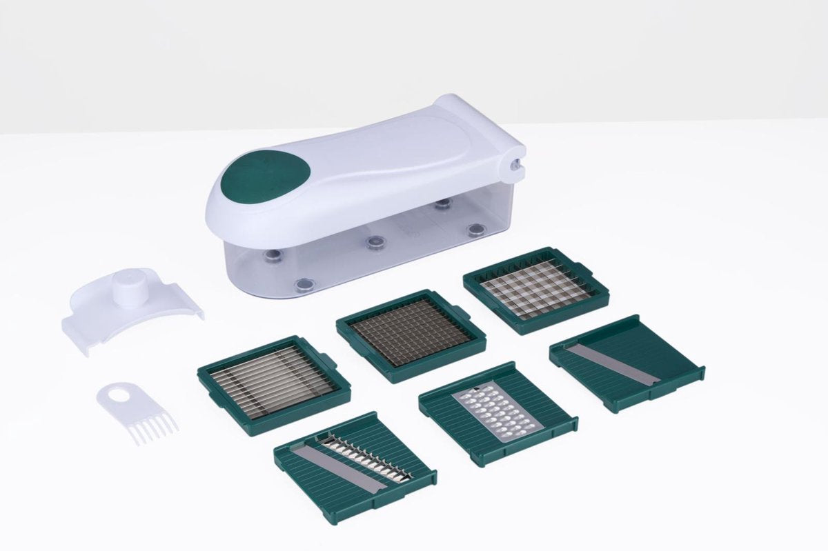 - Vielfältige Schneideoptionen: Schneiden, Raspeln und Würfeln mit sechs auswechselbaren Klingen.
