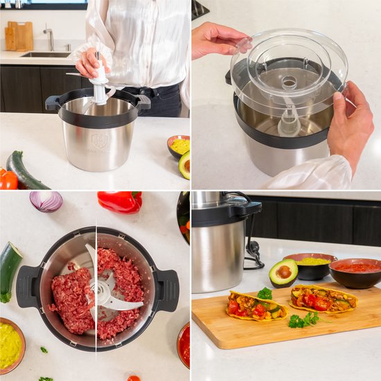 AoraKitchen - Zerkleinerer - Elektrisch - 5 Liter - 2000W - 4 Edelstahl-Messer