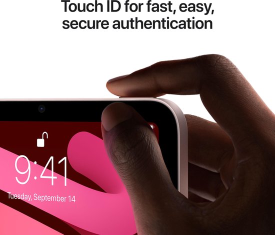 Touch ID ist in die obere Taste integriert und macht es sicher und einfach, das iPad mit deinem Fingerabdruck zu entsperren. Außerdem lassen sich damit Zahlungen sicher durchführen.