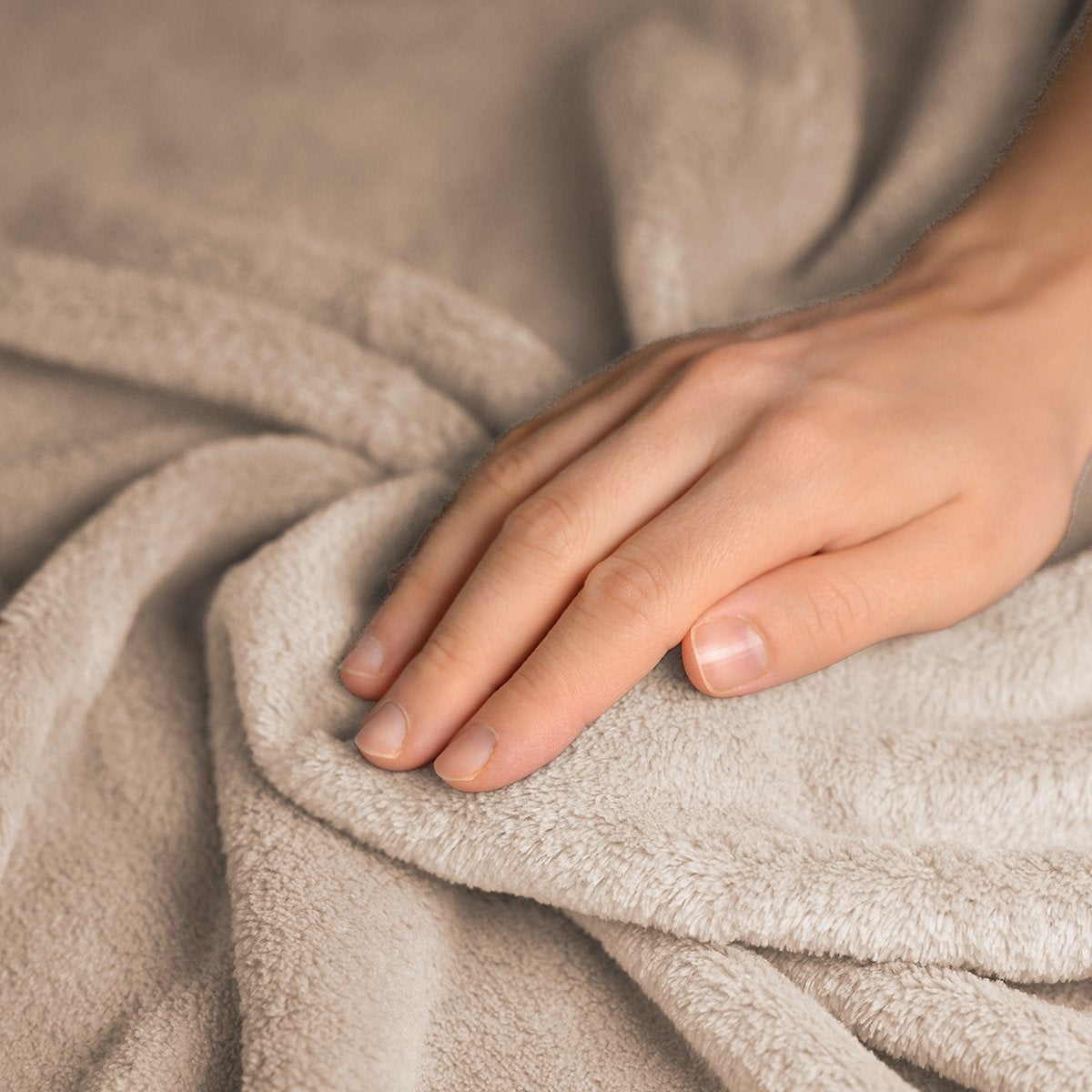 Das extra weiche und atmungsaktive Flanellmaterial fühlt sich weich und angenehm an. Die Decke ist zweifarbig mit einer dunkelbraunen Außenseite und einer hellbraunen Innenseite. Perfekt für fast jedes Interieur!