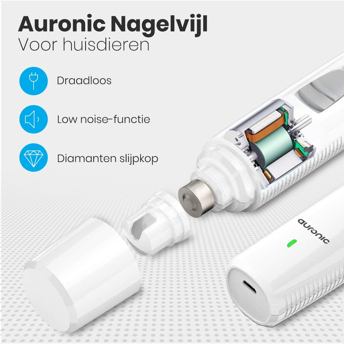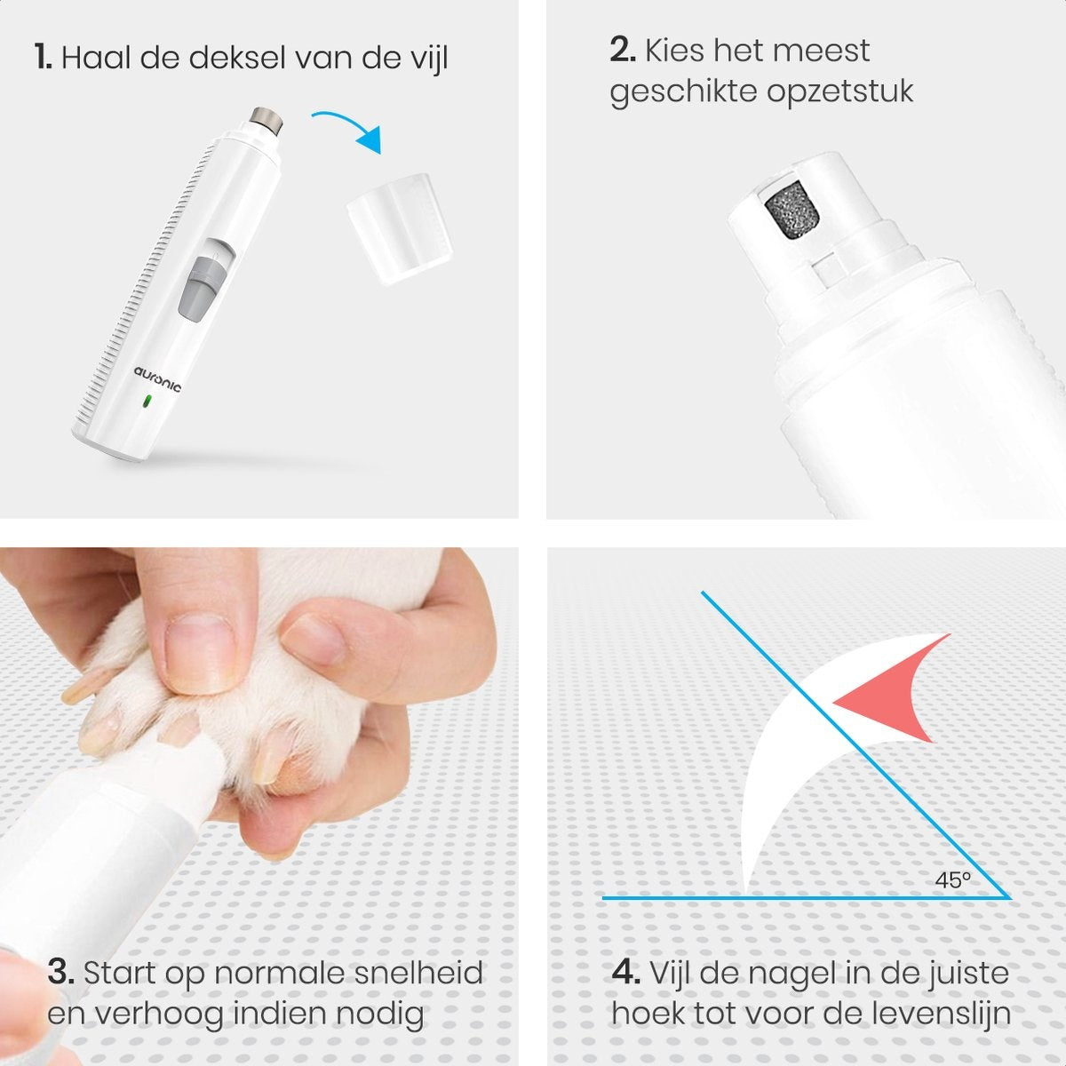 Auronic Elektrische Nagelfeile - für Tiere - wiederaufladbar - kabellos - Diamantfeilenkopf - Hund/Katze - weiß