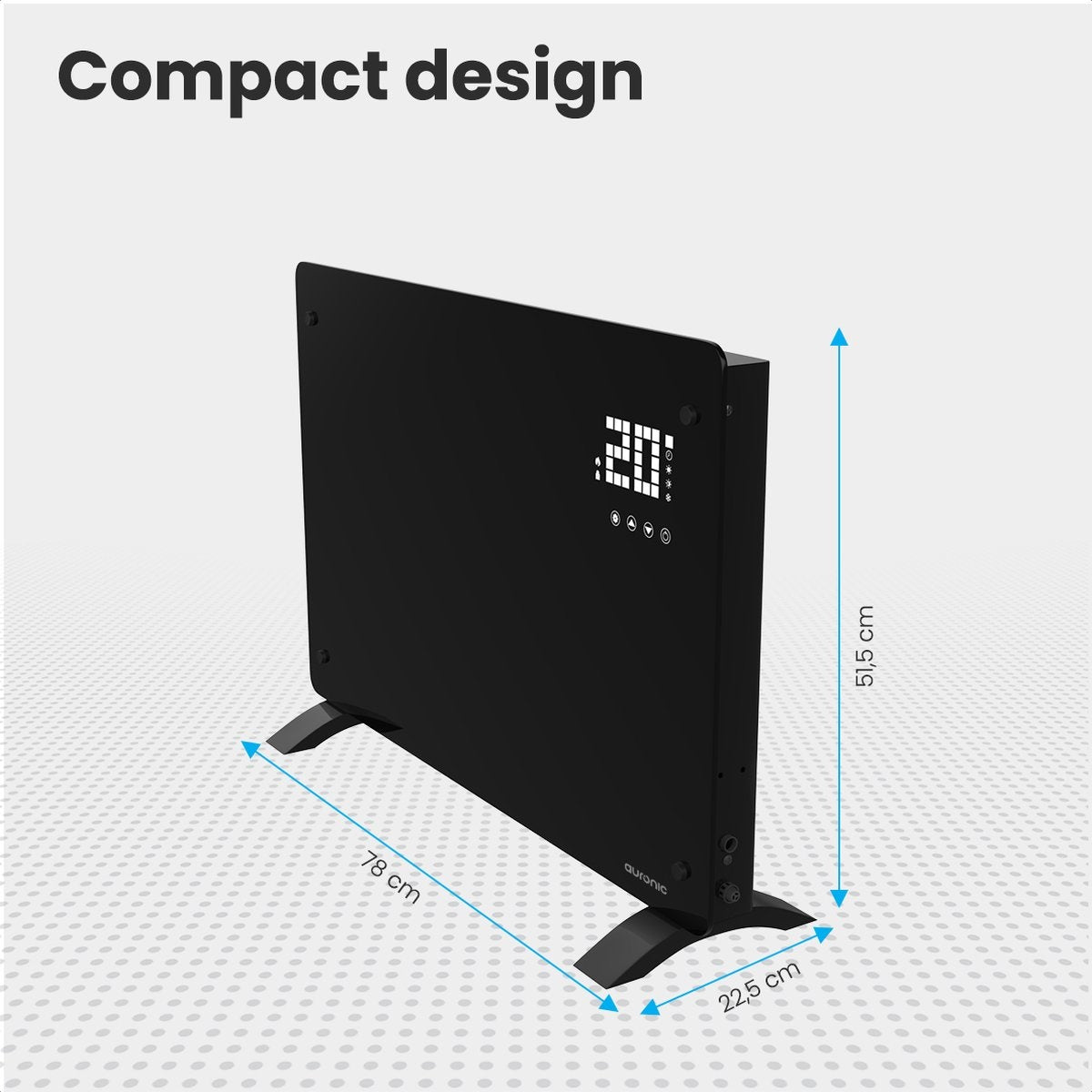 Das neue Design des Auronic-Heizkonvektors sieht nicht nur gut aus, sondern bietet auch praktische Funktionen. Das LED-Display verfügt über eine praktische Touch-Bedienung, mit der Sie die Einstellungen mit einem einzigen Druck auf den Bildschirm ändern können, was sehr einfach ist! Das Display ist gestochen scharf und leicht zu bedienen, so dass Sie im Handumdrehen einen angenehm beheizten Raum genießen können. Das aktualisierte Design sieht moderner aus als herkömmliche Konvektionsheizungen.
