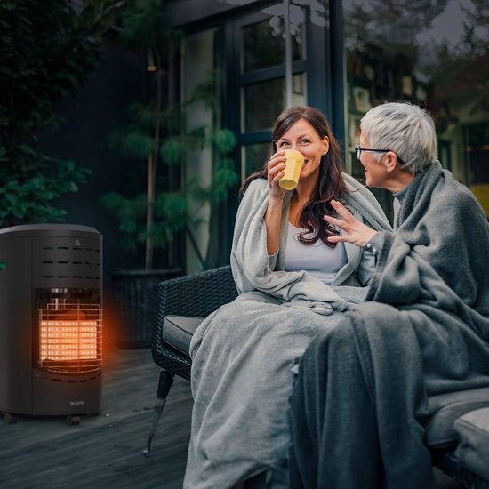 Auronic Mobiler Gaskocher - mit Rädern - bis zu 60 m² - Inklusive Gasdruckregler und Gasschlauch - Inklusive Aufbewahrungshülle - Schwarz