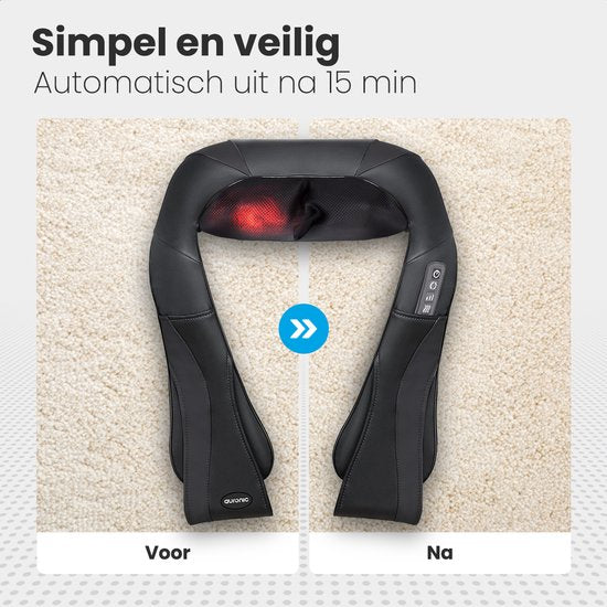 Genießen Sie eine kraftvolle oder einfach nur entspannende Massage mit dem kabellosen Auronic Massagegerät, ausgestattet mit 8 rotierenden Shiatsu-Massageköpfen. Wählen Sie aus 3 verschiedenen Intensitätsstufen und aktivieren oder deaktivieren Sie die Wärmefunktion. Dank der praktischen Armschlaufen brauchen Sie das Auronic Nacken- und Schultermassagekissen nirgends zu befestigen. Dieses Kissen ist für den ganzen Körper geeignet und schaltet sich nach einer wunderbaren 15-minütigen Massage automatisch ab! Dieses Shiatsu-Massagekissen wird mit einer praktischen Tragetasche geliefert, so dass Sie das Kissen überallhin mitnehmen können!