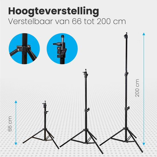 Der Ständer der Softbox ist von 66 bis 200 cm verstellbar, so dass du immer die perfekte Lichtquelle schaffst, egal ob von oben, unten, seitlich oder hinten. Der Stativfuß sorgt dafür, dass er immer fest und stabil auf dem Boden steht. Außerdem kann sich die Softbox selbst um 210° drehen. Ideal für direktes Licht auf dein Motiv oder reflektiert über die Decke oder die Wand.