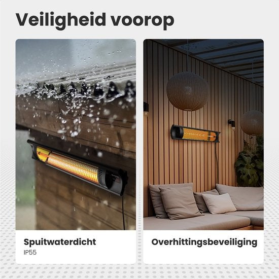 - Einer der Hauptvorteile dieses Auronic Terrassenheizers ist die einfache Installation. Ob du dich für eine Wand-, Decken- oder Stativmontage entscheidest, unser Terrassenheizer wird mit einer Wandhalterung und Befestigungsmaterial geliefert, was die Montage zum Kinderspiel macht. Darüber hinaus macht das IP55-Zertifikat das Gerät staub- und spritzwassergeschützt, so dass es sowohl drinnen als auch draußen verwendet werden kann.