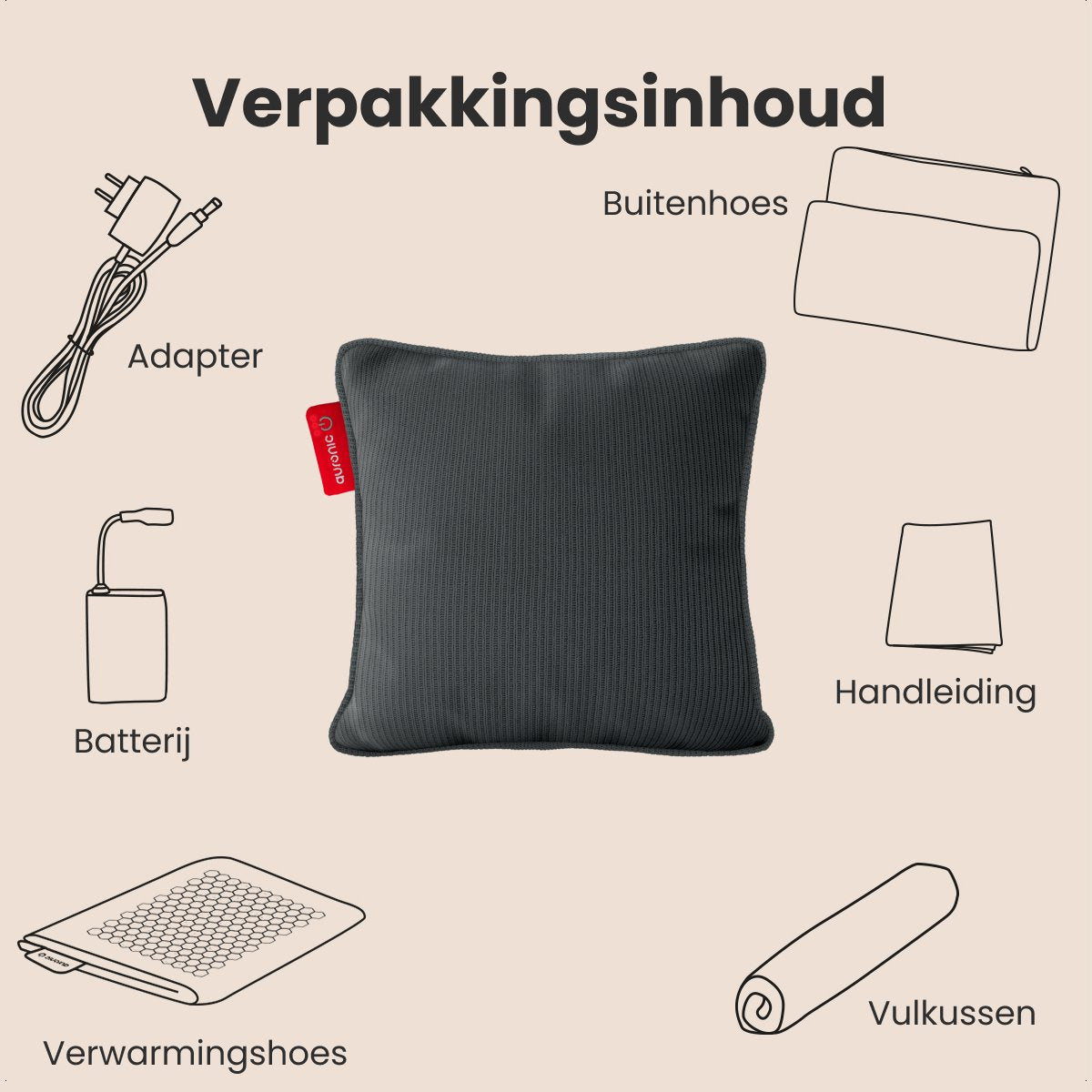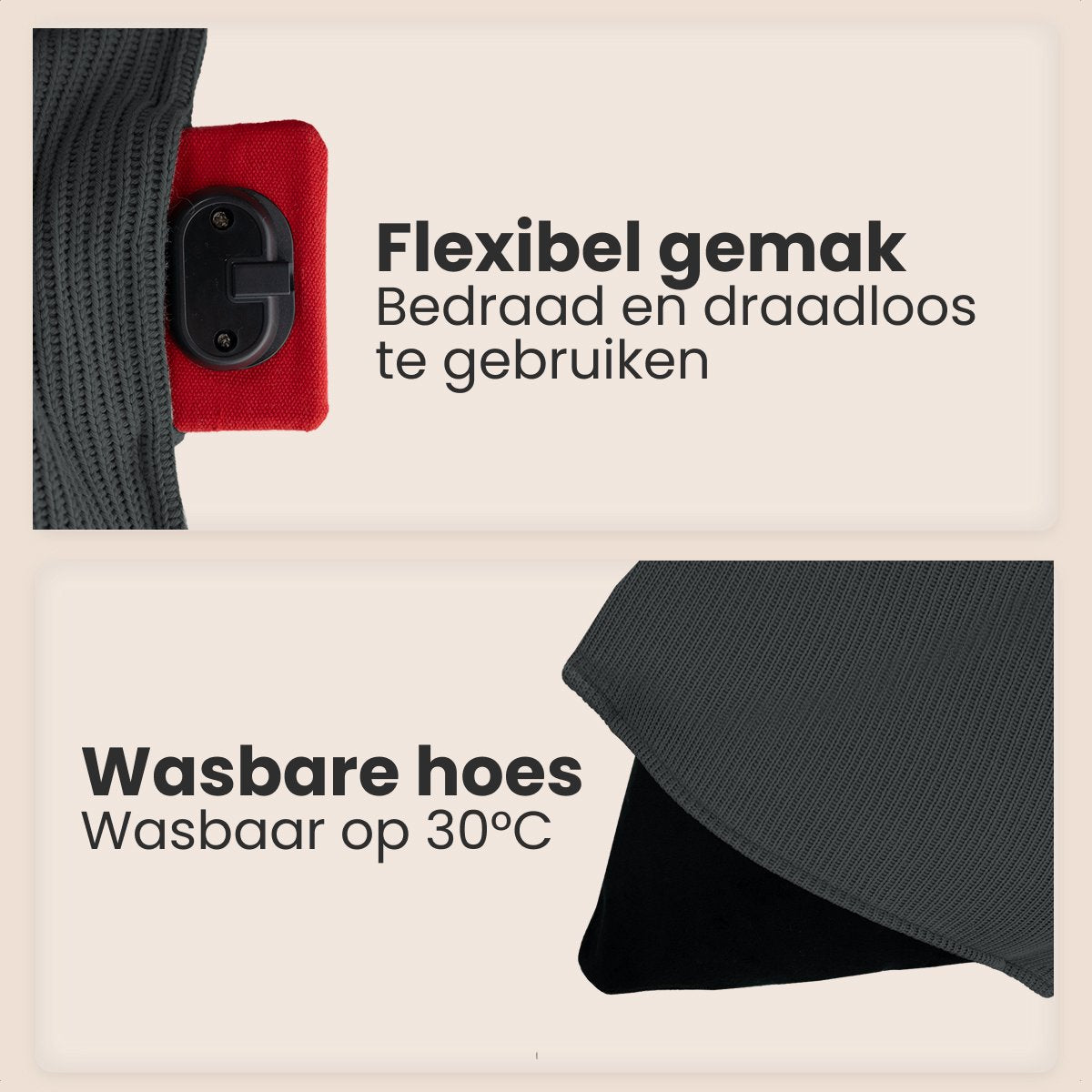 Auronic Wärmekissen - Gestrickt - 45x45 cm - Kabellos - Wiederaufladbar - Elektrisch - Infrarot - Grau