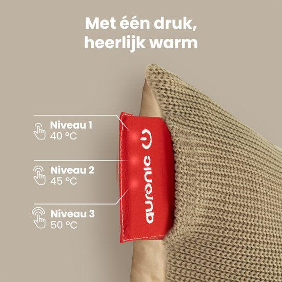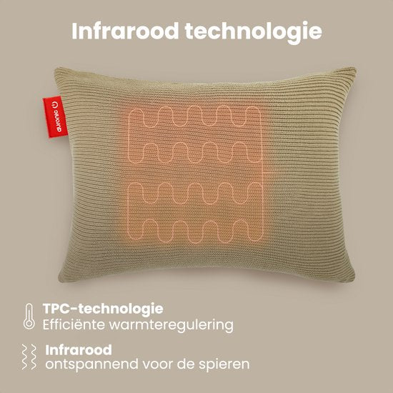 Auronic Wärmekissen - Gestrickt - 45x60 CM - Wärmekissen Kabellos - Wiederaufladbar - Elektrisches Kissen - Infrarot - Taupe