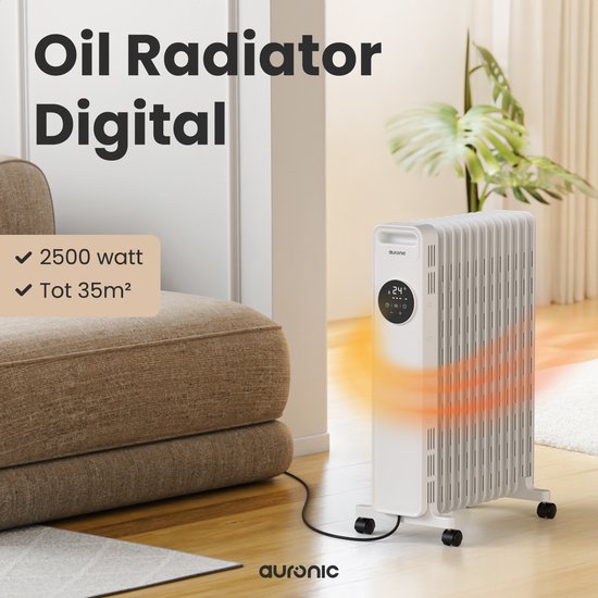 Auronic Olieradiator - Elektrisches Heizgerät - 2500W Heizgerät - Weiß