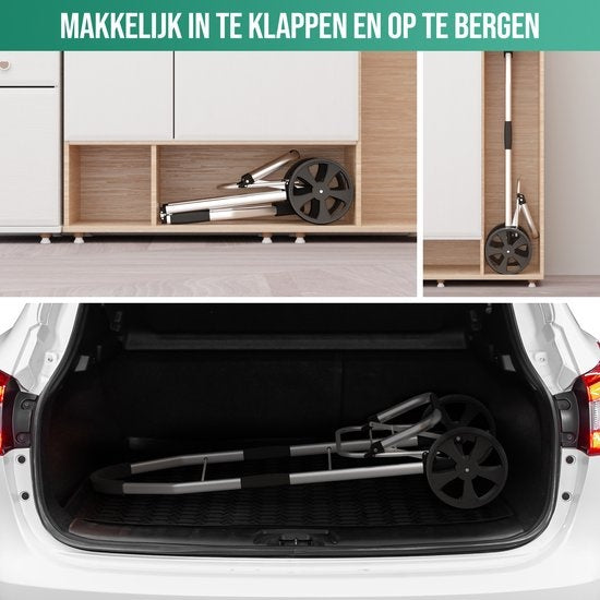 Der Avalo-Einkaufswagen ist faltbar. Das bedeutet, dass er fast keinen Platz einnimmt. Sie haben den faltbaren Trolley zum Einkaufen benutzt und möchten ihn verstauen? Dann falten Sie ihn einfach zusammen und bringen ihn von einer Höhe von 103 cm auf 49 cm. Nach dem Zusammenklappen ist er superkompakt und passt somit problemlos in den Ablageschrank oder in den Kofferraum des Autos. Ein faltbarer Einkaufswagen ist unglaublich praktisch!