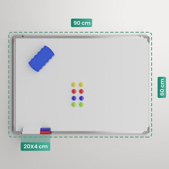 Avalo Whiteboard 60x90 cm - 14 in 1 Set - Whiteboard Magnetic inklusive Marker, Magnete & Radiergummi