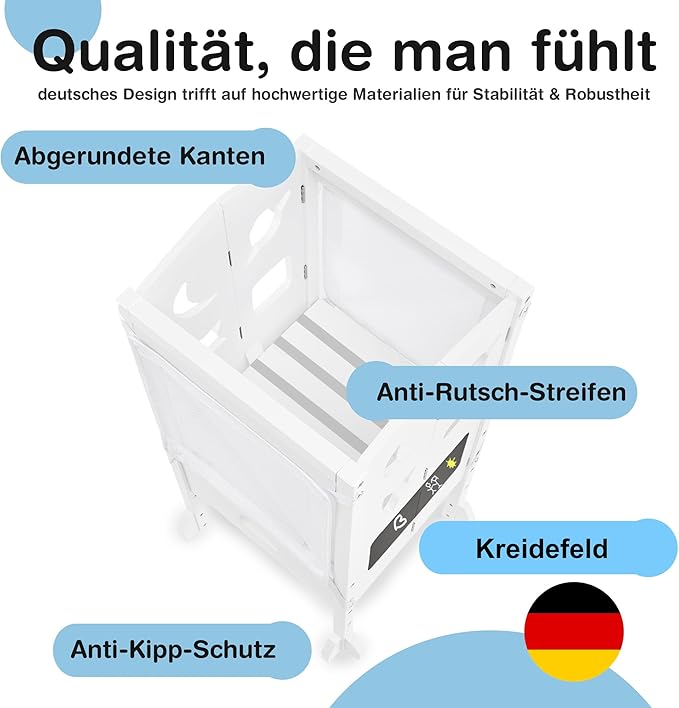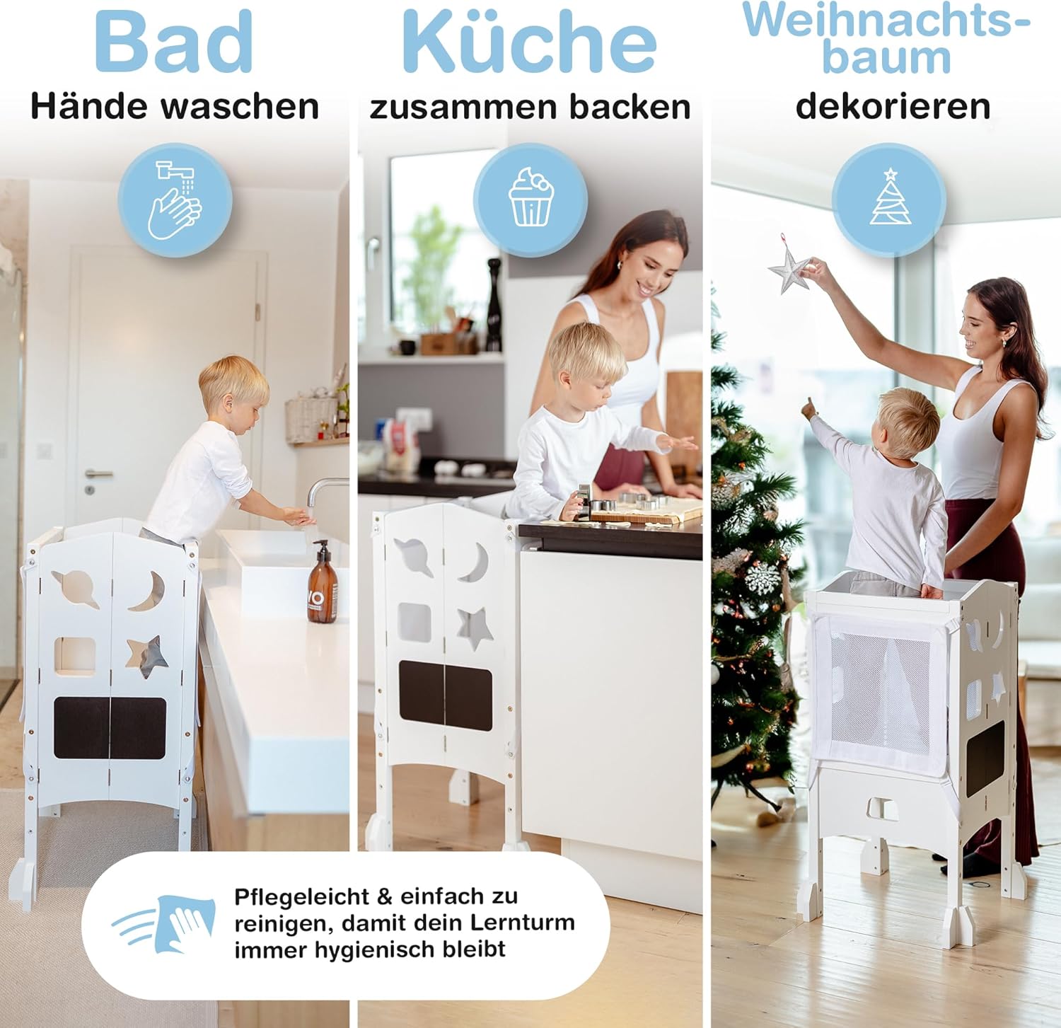 - Entdecken Sie den BabybeFun Lernturm: deré Partner, um Ihr Kind sicher in das Kochen einzubeziehen, die Selbständigkeit zu fördern und eine aktive, geschützte und sichere Teilnahme zu ermöglichen.