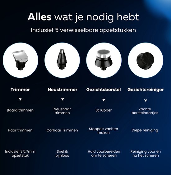 Beeperfect® 5-in-1 Rasierer Männer - Trimmer - Schnurlose Nass- und Trockenrasur - Elektrischer Rasierer - Bartschneider - 5 Aufsätze