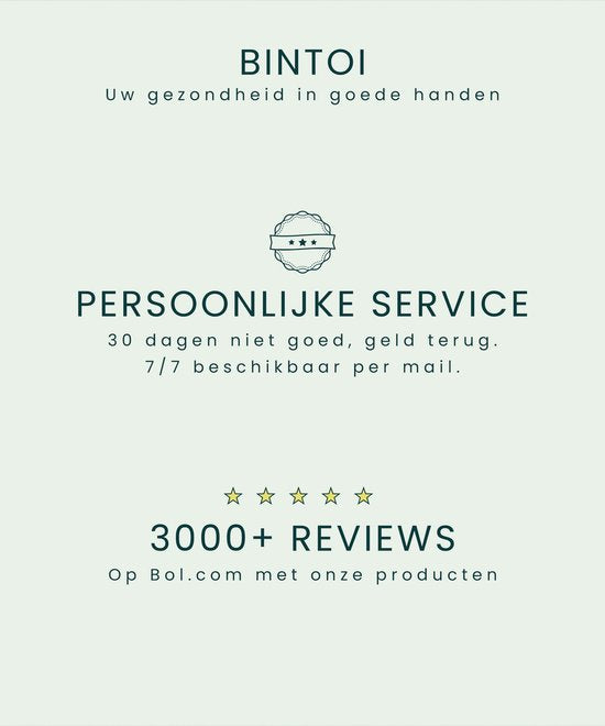 Bintoi ist eine belgische Marke, die sich auf hochwertige Gesundheitsprodukte zu einem fairen Preis konzentriert. Durch den Direktvertrieb an die Verbraucher umgehen wir Zwischenhändler und können innovative Technologien zu einem attraktiven Preis anbieten.