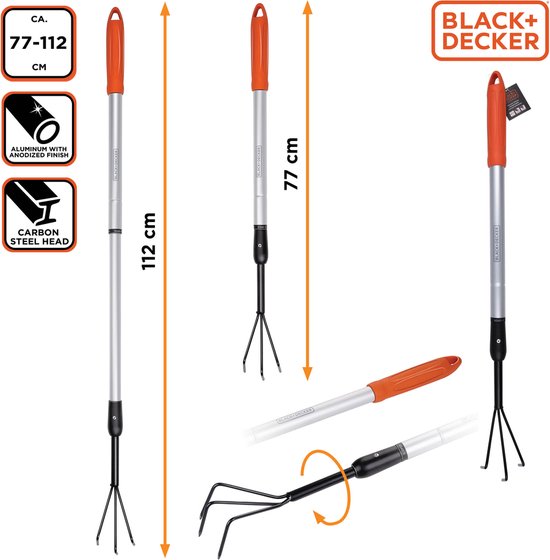 BLACK+DECKER Kultivator - Teleskopstiel 77 - 112 CM - 3 Zinken - Aluminium/ Kohlenstoffstahl