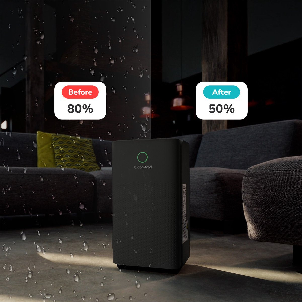 Bloomfold Luftentfeuchter - 12L pro Tag - Wohnzimmer, Schlafzimmer, Keller & Badezimmer - Luftentfeuchter - Schwarz