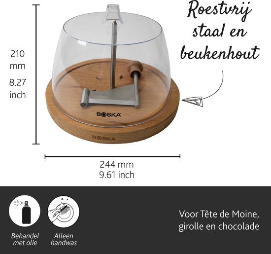 Boska Käseschleuder Amigo mit Stolp - Tete de Moine Käseschleuder - Tete de Moine - Schokoladenschleuder - 220 x 220 x 175 mm - Teilweise spülmaschinengeeignet - Küchenutensilien - Küchenzubehör - 10 Jahre Garantie