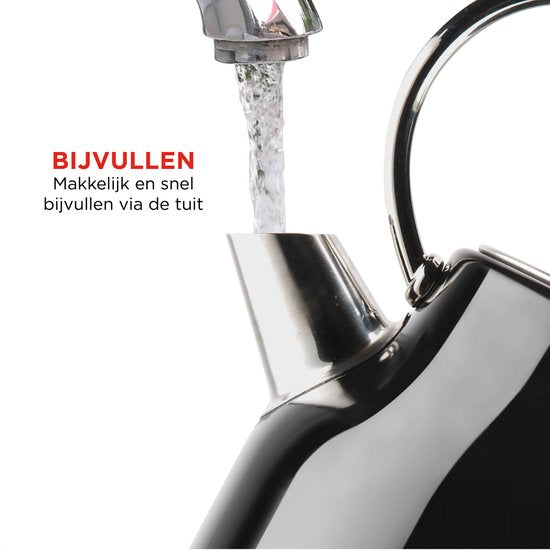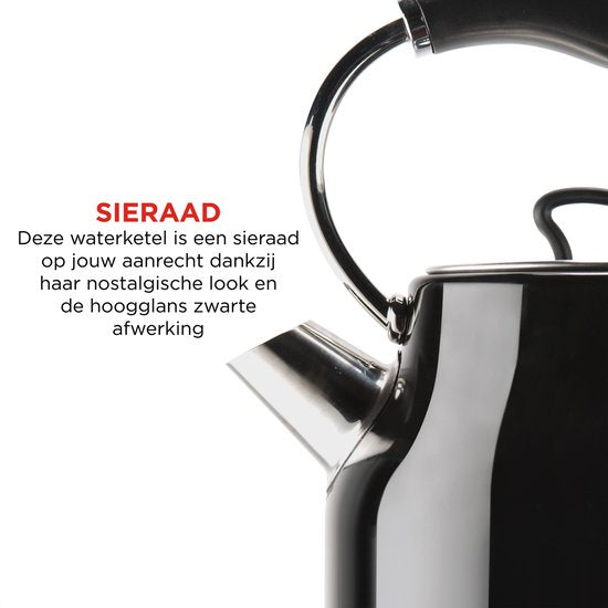 Bourgini Nostalgischer Wasserkocher Deluxe - Schwarz - Retro Design - 1.7L