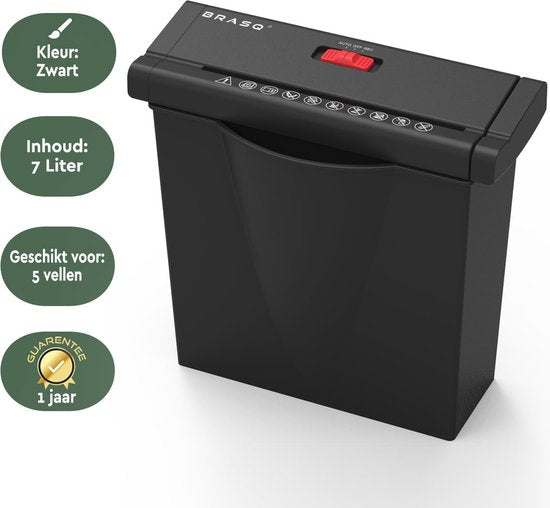 BRASQ Aktenvernichter mit Auffangbehälter Schwarz - 7 Liter - Aktenvernichter für Heim und Büro - P2 - 6mm Streifen - 6 Blatt