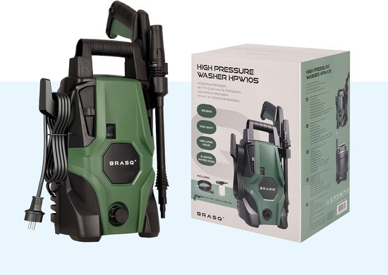 BRASQ HPW 105 Hochdruckreiniger - Terrassenreiniger - Hochdruckreiniger - 1400W - 105 bar - 426 L/H - Komplettset