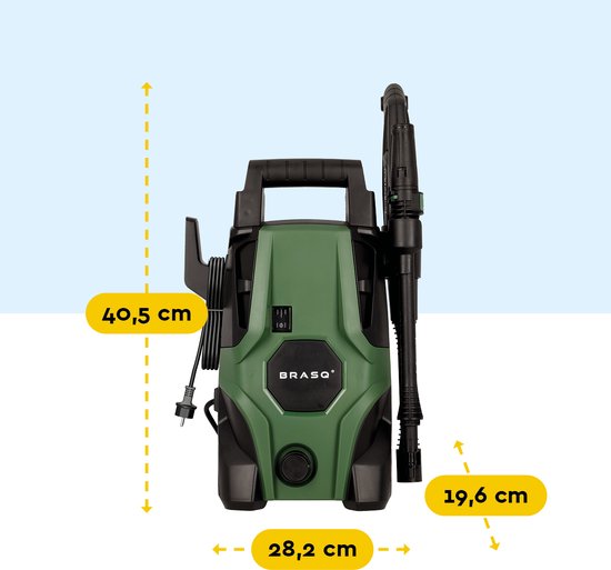 Der BRASQ HPW 105 ist ein kompakter und leichter Hochdruckreiniger (nur 4,7 kg), der sich leicht bewegen und aufbewahren lässt. Der mitgelieferte Seifenspender lässt sich mühelos an der Sprühlanze befestigen. So können Sie einen gleichmäßigen Schaum erzeugen und das Reinigungsmittel genau so dosieren, wie Sie es wünschen - perfekt für die Reinigung von Autos, Fahrrädern oder Gartenmöbeln. Mit dem 5 Meter langen Hochdruckschlauch und dem 5 Meter langen Stromkabel genießen Sie viel Bewegungsfreiheit, damit Sie bequem weiterarbeiten können.