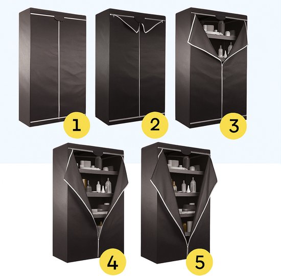 Ob in der Garage, im Schuppen, im Lager oder im Büro, diese Stoffgarderobe passt sich jedem Ort an. Auch als günstige Garderobe im Gästezimmer oder in der Studentenwohnung funktioniert er perfekt. Die neutrale schwarze Farbe sieht stilvoll aus und passt zu jeder Einrichtung.