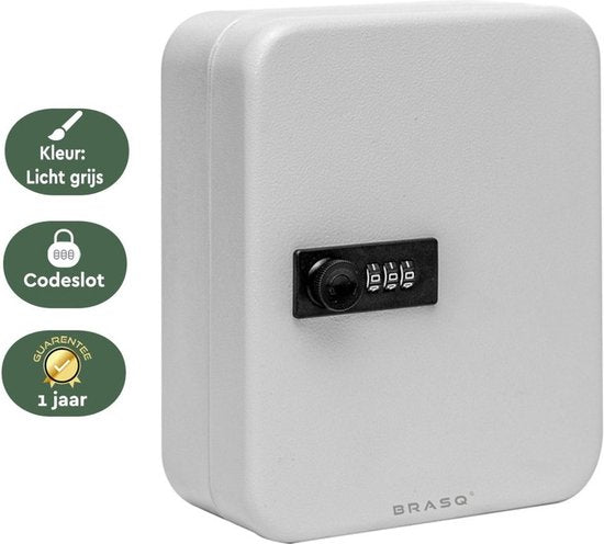 BRASQ Schlüsselsafe 20 Schlüssel mit Zahlenschloss - Schlüsselkasten, Schlüsselschrank KC300 Grau mit Zahlenschloss