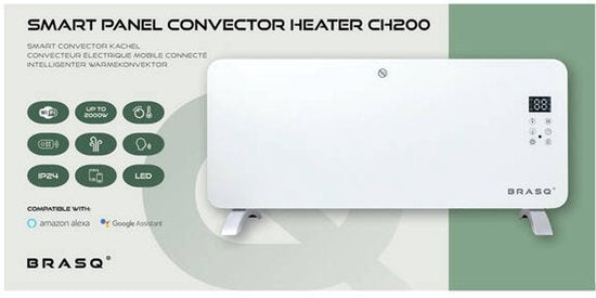 BRASQ Smart Convector Heater Weiß - Elektrische Heizung - Heizung mit WiFi bis zu 2000 Watt - 2 Einstellungen - Wasserdicht - bis zu 20M2