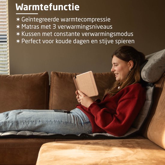 Mit der integrierten Wärmekompression erleben Sie eine wunderbare warme Massage. Diese Matratze verfügt über drei Heizstufen, während das Kissen eine permanente Heizfunktion hat. Perfekt für kalte Tage oder zur Entspannung verspannter Muskeln.