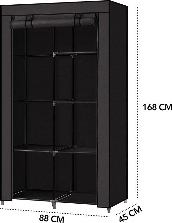 Brixy Kleiderschrank - Kleiderschrank - Faltbarer Kleiderschrank - Faltbarer Stoffschrank - Campingschrank - 88 x 45 x 168 cm - Schwarz