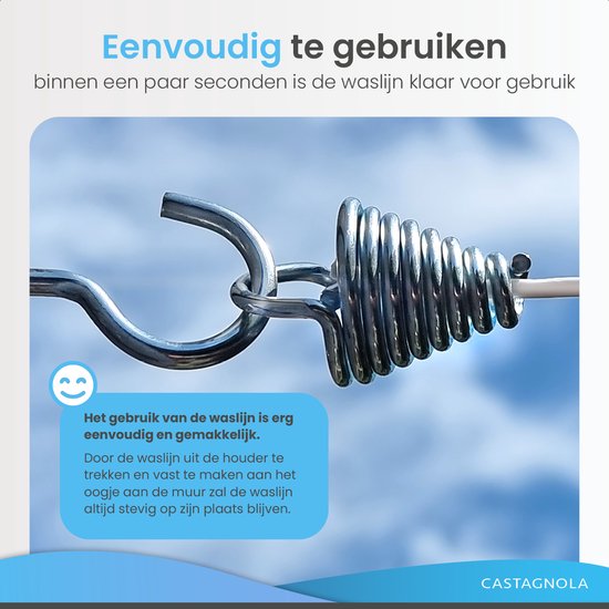 Castagnola Wäscheleine - Ausziehbare Wäscheleine - Wäscheleinenfaden - Wäscheleine 12 Meter - Kapazität bis zu 13 kg