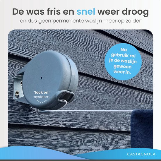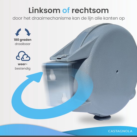 Schaffen Sie auf intelligente und platzsparende Art und Weise Wäscheplatz innerhalb von 12 Metern. Die rollende Wäscheleine von Castagnola ist die ideale Lösung, um Ihre Wäsche schnell und effektiv zu trocknen, ohne wertvollen Platz auf dem Boden oder im Garten zu verbrauchen.