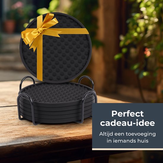 Castagnola Silikon-Untersetzer - Untersetzer für Gläser - Design-Untersetzer mit Halter - Untersetzer-Set - Anti-Rutsch - 6er-Set - Schwarz