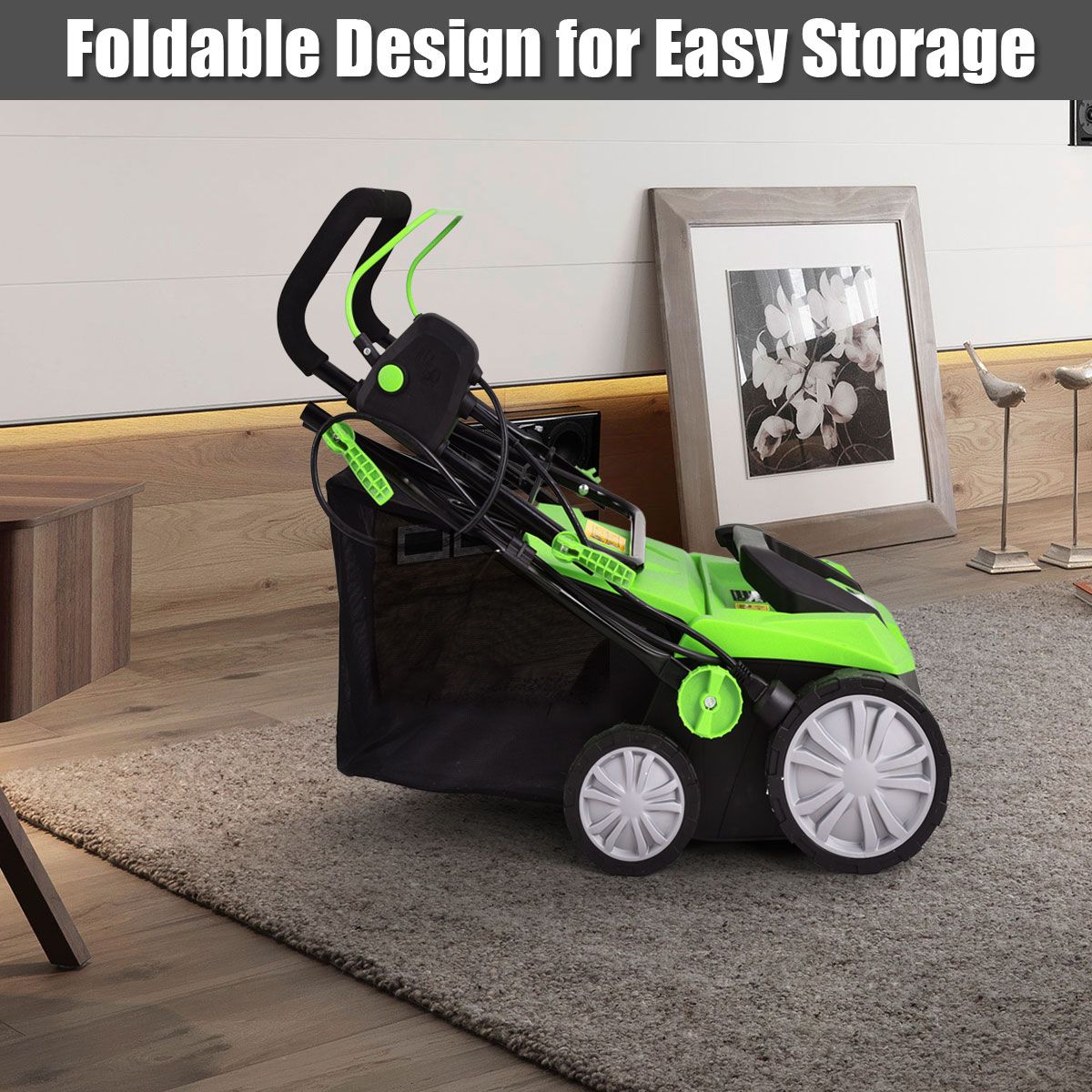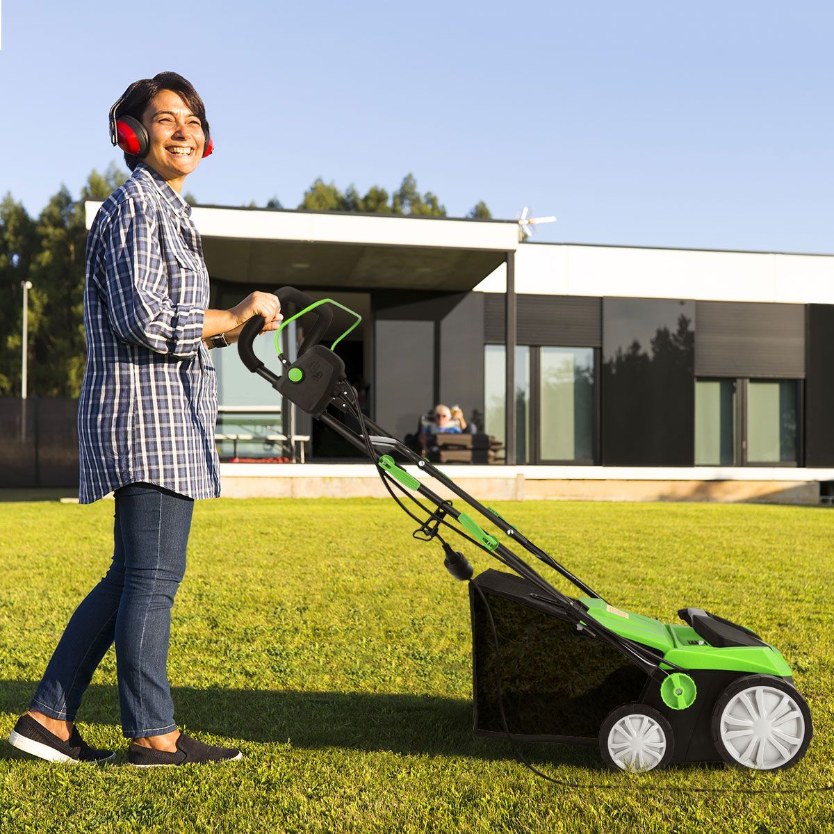 Dieses vielseitige Gerät ist mit einer 2-in-1-Funktion ausgestattet, mit der Sie leicht zwischen Vertikutieren und Vertikutieren wechseln können. Mit den 4 einstellbaren Tiefeneinstellungen können Sie die Maschine an verschiedene Grasarten und Bodenbedingungen anpassen. Dank des 45-Liter-Fangsacks werden alle Abfälle automatisch aufgefangen, so dass Sie nicht harken müssen.