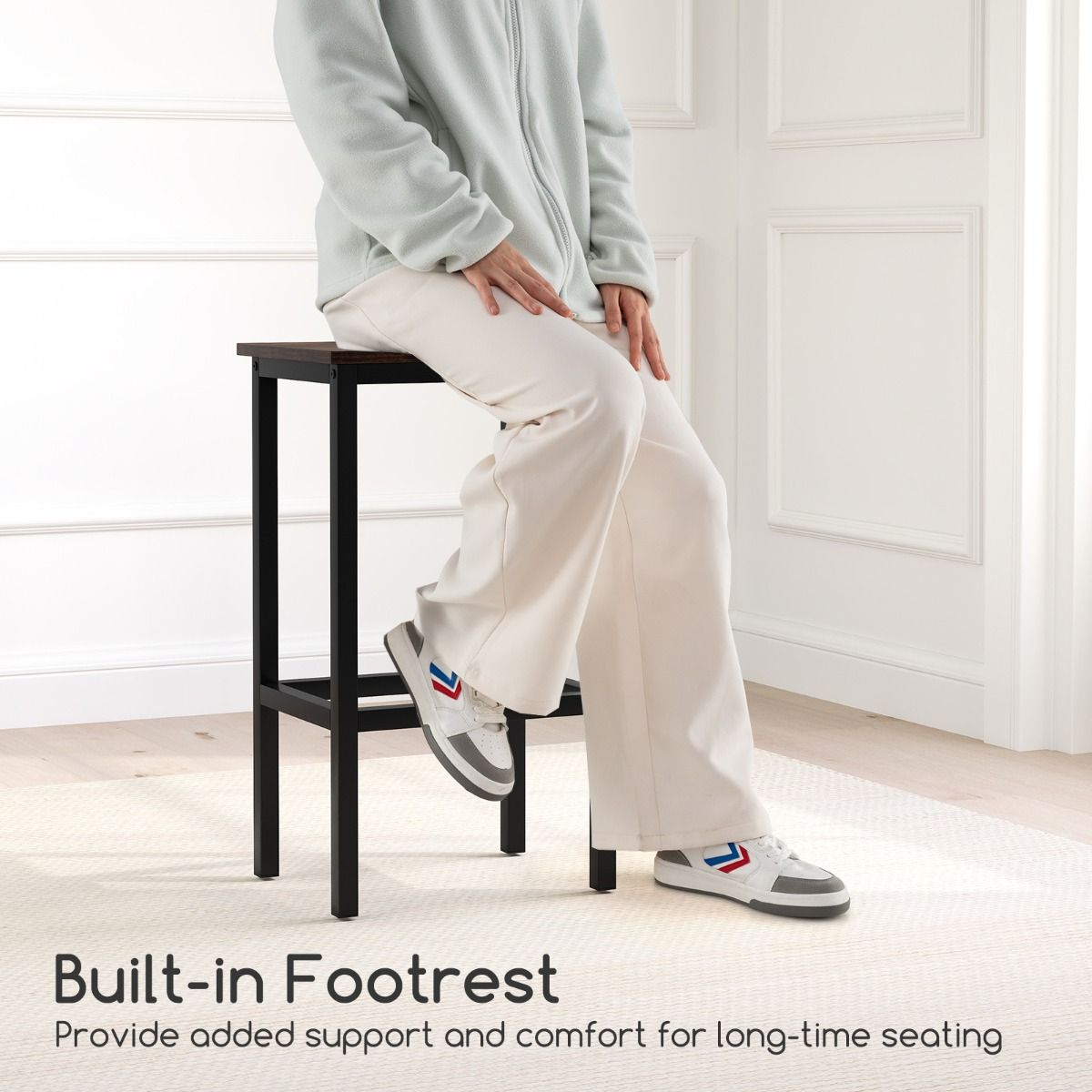 - Barhocker mit den Maßen 40 x 30 x 66 cm und integrierten Fußstützen