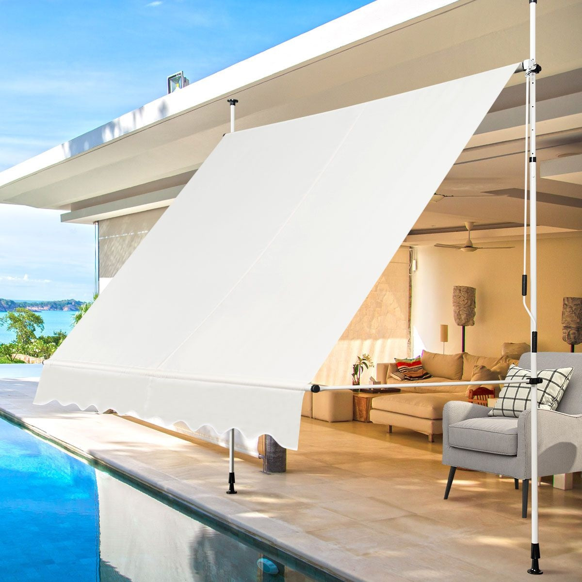 Dieses ausziehbare Vordach kann ideal vor Fenstern, auf der Terrasse, dem Balkon oder im Garten eingesetzt werden. Die wetterfeste Markise ist aus sorgfältig ausgewähltem PU-beschichtetem Oxford-Gewebe gefertigt. Dank ihres leichten, aber soliden Aluminiumgestells bietet diese Markise eine stabile und robuste Konstruktion, die auch einigen Windstärken standhält. Dank der benutzerfreundlichen Kurbel können Sie das Sonnensegel frei bewegen und auch die Höhe und den Winkel des Sonnenschutzes ein- und ausfahren. Diese praktische Konstruktion schützt Sie davor, von grellen Sonnenstrahlen geblendet zu werden und sorgt nur für angenehmes, weiches Licht und kühle Temperaturen. Damit ist dieses Sonnensegel die perfekte Wahl für Ihren Lieblingsplatz im Freien und lässt sich mühelos steuern. Eigenschaften: Sorgfältig ausgewählte Materialien: Die Herstellung des Gestells aus stabilem Aluminium verleiht unserer Markise eine hohe Widerstandsfähigkeit und Langlebigkeit. Die einzelnen Teile sind stabil zu einem robusten Gestell zusammengefügt, das einer gewissen Windstärke standhält. Dank des hochwertigen, witterungsbeständigen Oxford-Gewebes kann die Markise auch Feuchtigkeit und Staub standhalten ? und bleicht nicht aus. Der Stoff unserer Markise reflektiert diese UV-Strahlung effektiv und gibt Ihnen ein weicheres, angenehmes Licht. Darüber hinaus reduziert die Markise spürbar die Hitze, die durch die Sonne entsteht und gibt ihnen eine angenehm kühle Umgebung. Höhenverstellbar &, Handkurbel: Die Höhe des Aluminiumrohrs kann mit dem Drehknopf in einem Bereich von 190 cm bis 300 cm an Ihre Bedürfnisse angepasst werden. Dank der Handkurbel können Sie auch den Winkel der Markise nach Ihren Bedürfnissen einstellen. Egal wo die Sonne steht, diese Markise lässt sich optimal ausrichten und richtig behandeln. Vielseitige Einsatzmöglichkeiten: Mit ihrem modernen Design und der klassischen Farbe kann unsere ausfahrbare Markise nicht nur die Sonne abhalten, sondern auch als attraktive Dekoration für Ihre Umgebung dienen. Sie eignet sich perfekt für die Befestigung von Fenstern, Balkonen, Bauernhäusern, Veranden oder Cafés und Restaurants mit Außenterrassen. Einfacher Aufbau und Reinigung: dieser abnehmbare Baldachin kann leicht an einer soliden, massiven Ziegelwand, sowie leicht an einer Holzwand befestigt werden. Wir liefern die ausführliche Anleitung und die erforderlichen Komponenten mit dem Vordach, so dass Sie es in kurzer Zeit leicht montieren können. Dank der wasserdichten Ausführung kann das Vordach auch problemlos allein mit einem Staubtuch gereinigt werden. Eigenschaften: Aluminiumrahmen sorgt für hohe Stabilität und langlebiges und vielseitiges Bewusstsein für den Einsatz an verschiedenen Orten und schnell mit der Anleitung und Komponente geliefert ergonomische Kurbel kann einfach und sicher Futter an der Ober- und Unterseite der Wand und Boden Lage auf Ihrer Terrasse, Balkon oder im Café Oxford PU-beschichtetes Gewebe ist wasser- und sonnenbeständig für den Einsatz im Freien und der Winkel der Markise kann mit einer Teleskopstange und Drehknopf eingestellt werden