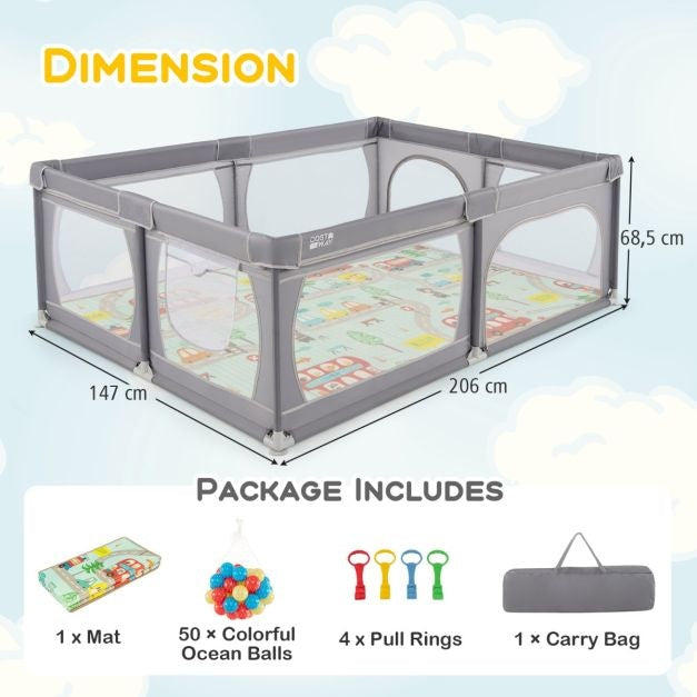 Coast Baby Laufstall mit 50 Bällen und 2 Türen - 206 x 147 cm - dunkelgrau