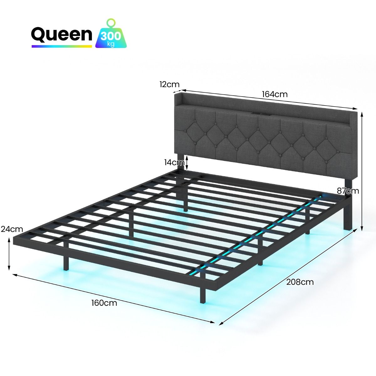 - 1 x gepolsterter Schwebebettrahmen mit LED-Beleuchtung