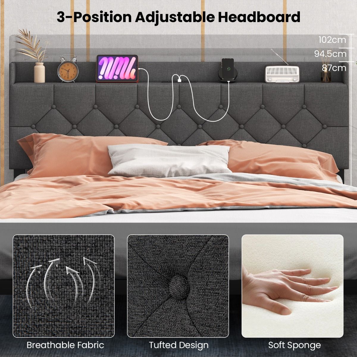 | Verstellbare Kopfteilhöhe: | 87 cm / 95 cm / 102 cm |