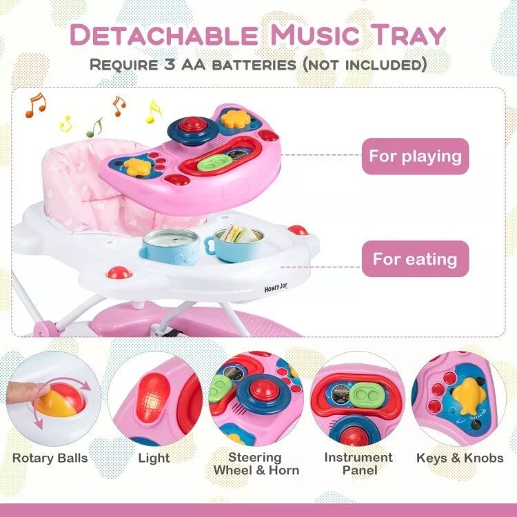 Abnehmbares Notenblatt: Ausgestattet mit rotierenden Kugeln, Lichtern, einer Lenkstange mit Hupe, Instrumententafel, Tasten und Knöpfen, fügt das Notenblatt dem Lauferlebnis ein spielerisches Element hinzu. Hinweis: Benötigt 3 AA-Batterien (nicht enthalten). Das abnehmbare Design macht diese Lauflernhilfe auch zum Spielen und Essen geeignet.