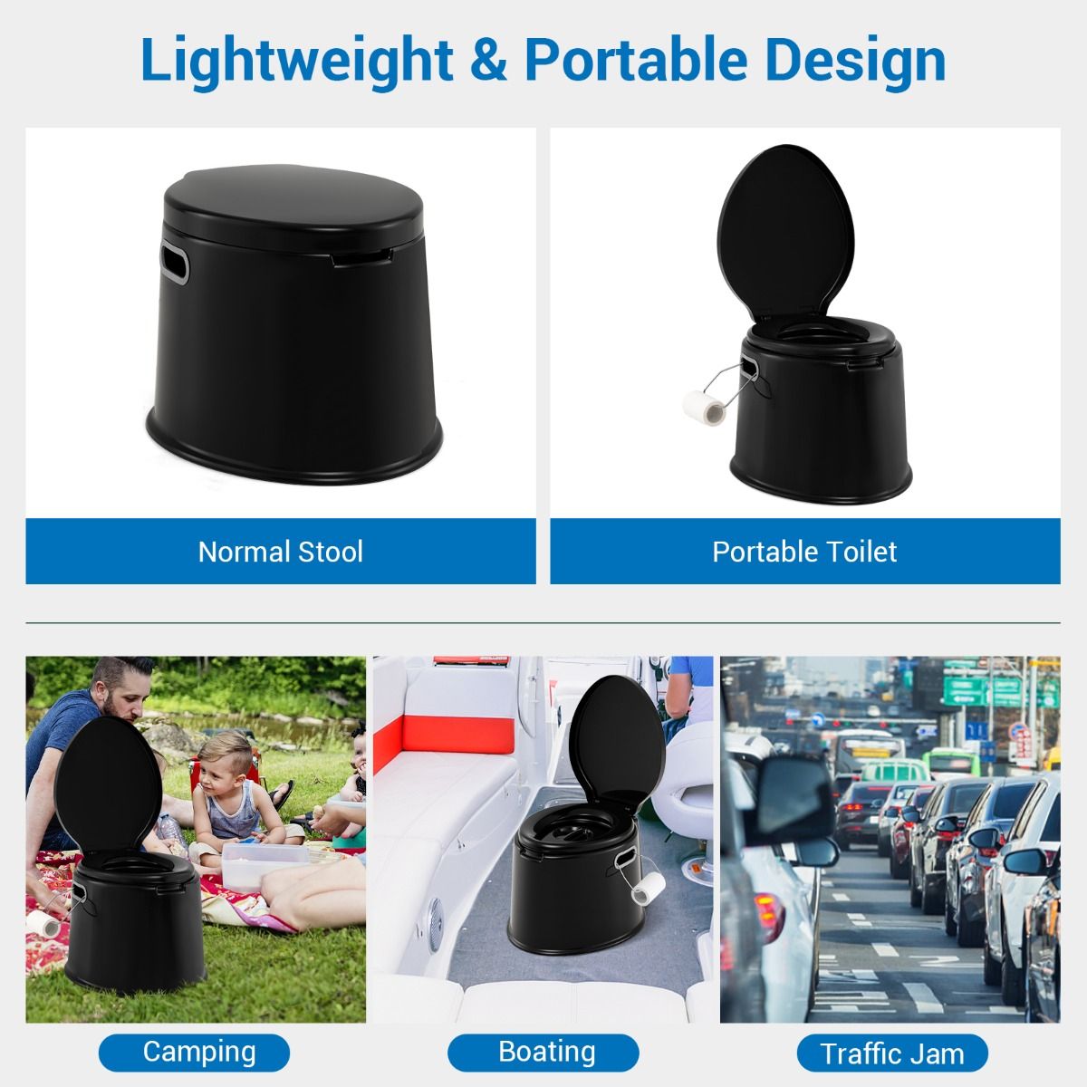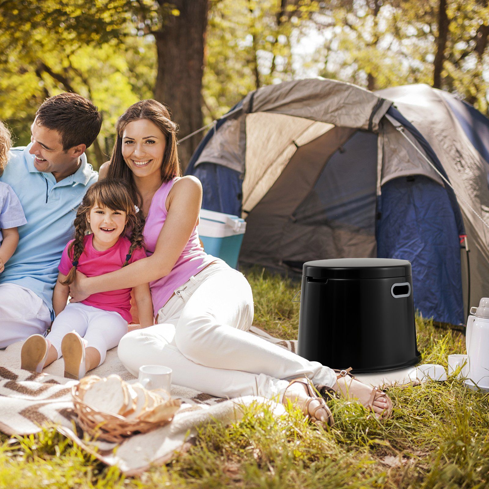 Bequeme und praktische tragbare Toilette für unterwegs
