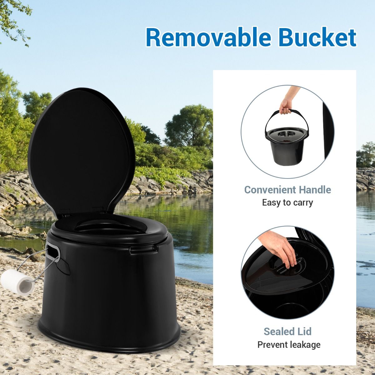 Dank ihrer kompakten Größe kann die Toilette problemlos im Innen- oder Außenbereich aufgestellt werden. Der robuste Inneneimer mit Henkel kann direkt oder mit einem Müllsack verwendet werden, was den Reinigungsaufwand minimiert. Die doppelten Deckel schließen dicht ab und verhindern unerwünschte Gerüche, so dass man die Natur entspannt genießen kann.