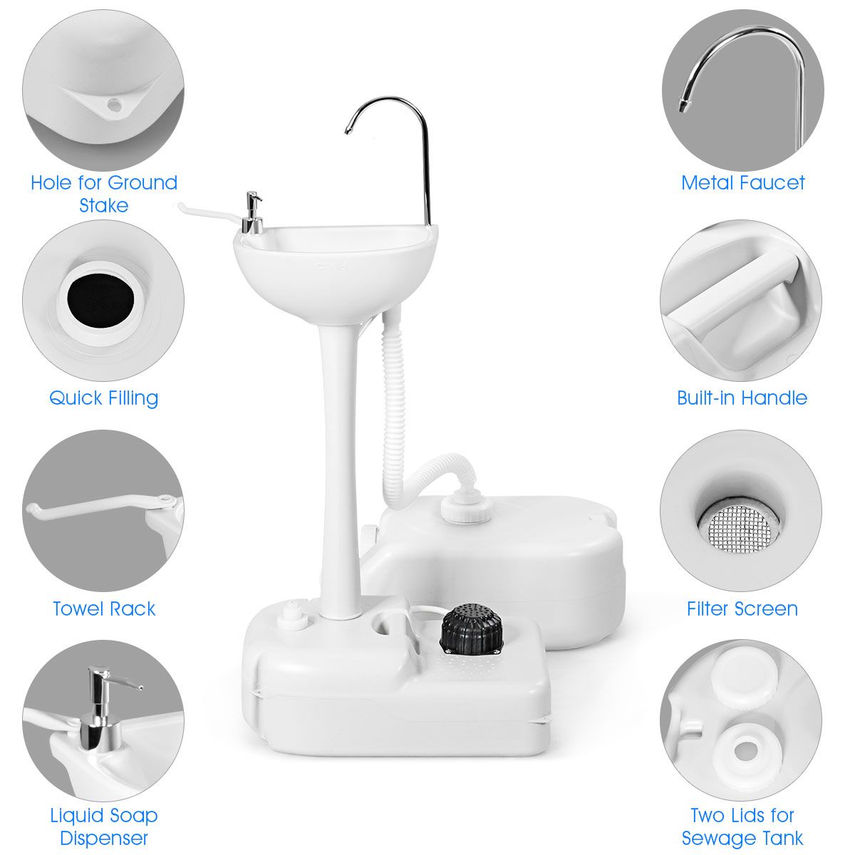 Coast Portable Camping Waschbecken - 17 L Wassertank - Handtuchhalter - Seifenspender - Weiß