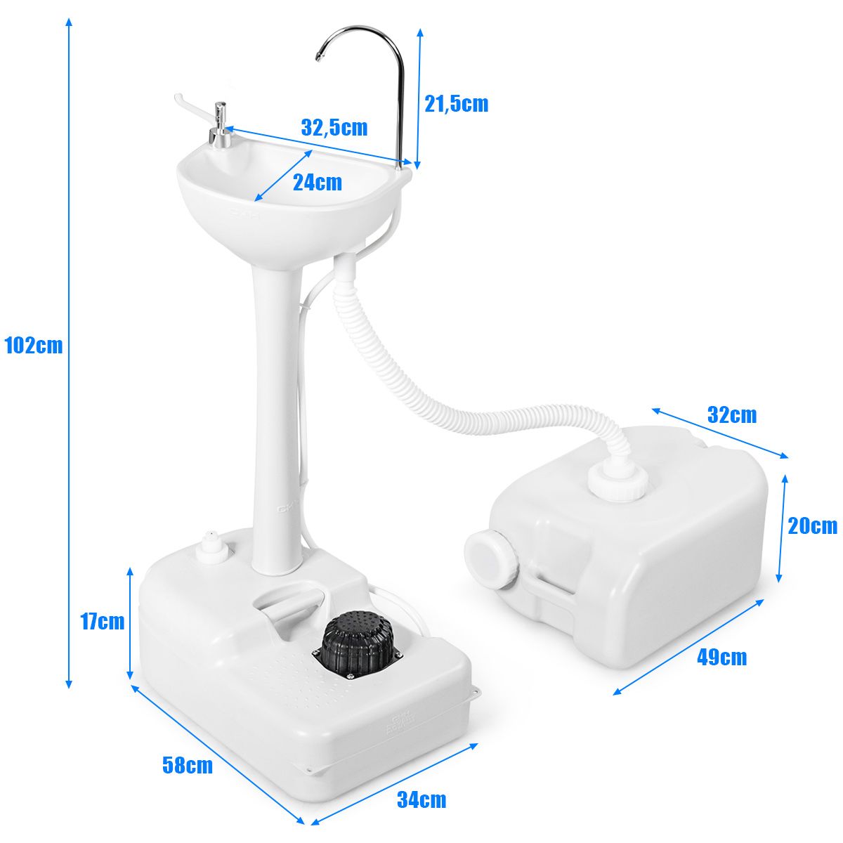Abmessungen Handwaschbecken: 58 x 34 x 102 cm (L x B x H)